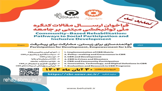 اولین کنگره بین المللی توانبخشی مبتنی بر جامعه (CBR) با شعار "توانمند سازی برای زیستن، مشارکت برای پیشرفت" در بهمن 1404 به میزبانی دانشگاه علوم توانبخشی و سلامت اجتماعی و سازمان بهزیستی کشور برگزار خواهد شد. پژوهشگران می توانند تا 15 آذر ماه 1404 مقالات خود را از طریق پایگاه رسمی کنگره به نشانی https://cbr.uswr.ac.ir/ ارسال نمایند.