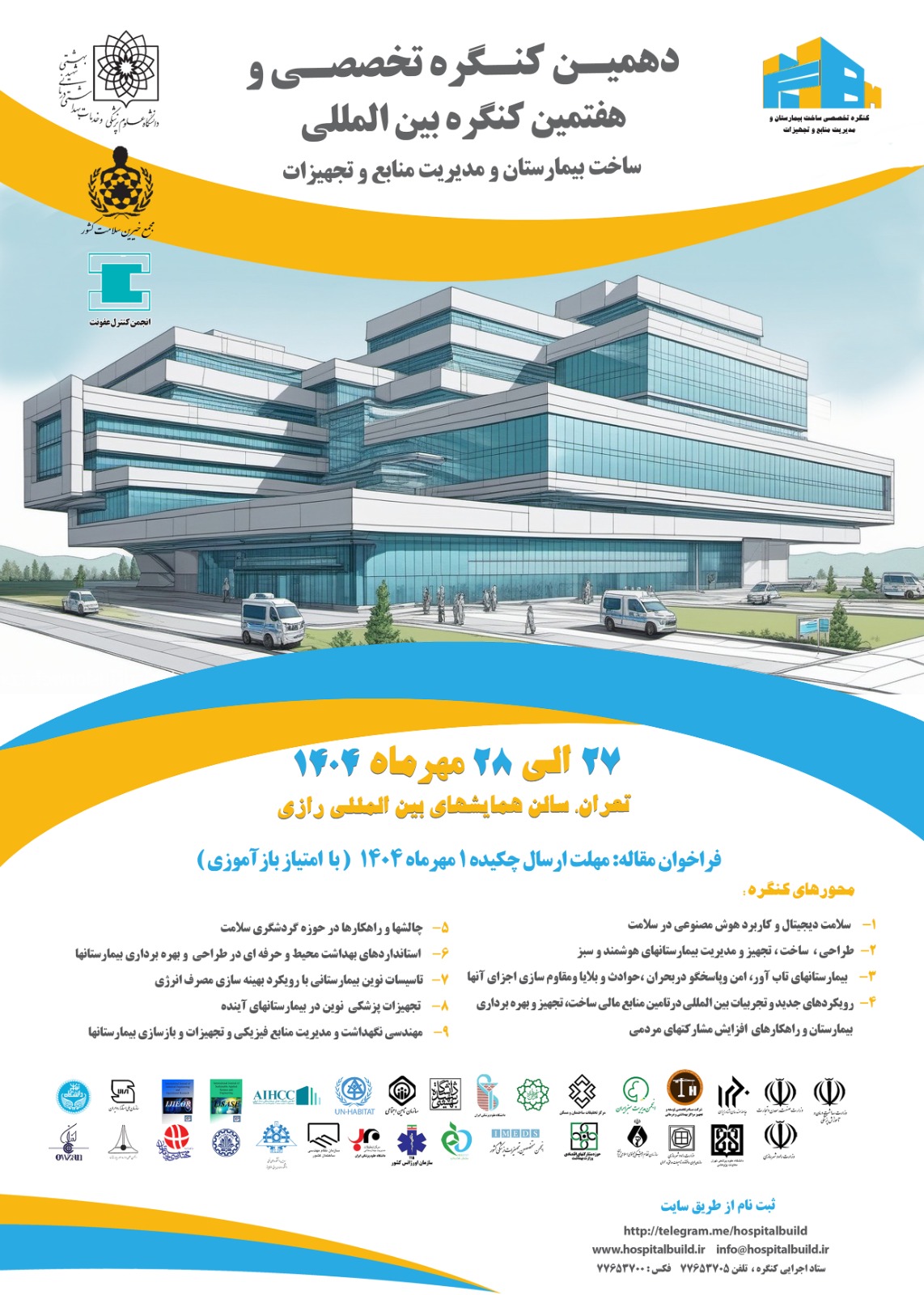 دهمین کنگره تخصصی و هفتمین کنگره بین المللی ساخت بیمارستان و مدیریت منابع و تجهیزات در تاریخ 27 الی 28 مهرماه 1404 به همراه جشنواره تقدیر از خیرین سلامت و پیشگامان ساخت بیمارستان و با امتیاز آموزشی در مرکز همایش های بین المللی رازی برگزار خواهد شد.